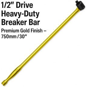 Autojack 750mm 1/2" Square Drive Breaker Bar with Flexi Knuckle Heavy-Duty Chrome Vanadium Steel GOLD