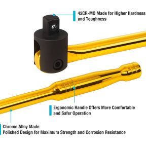 Unlike standard tools, this breaker bar features a striking gold-colored high-chrome plating, offering more than just good looks. The enhanced finish provides an added layer of corrosion resistance, helping the tool stay in excellent condition even in demanding workshop environments. Whether you're looking to make a visual statement with your tools or simply want a long-lasting, rugged piece of equipment, the gold variant stands out from the rest.