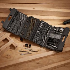 Lumberjack 300Pc HSS Drill Bit Set for Masonry Metal Wood Flat Pozi Bits in Case